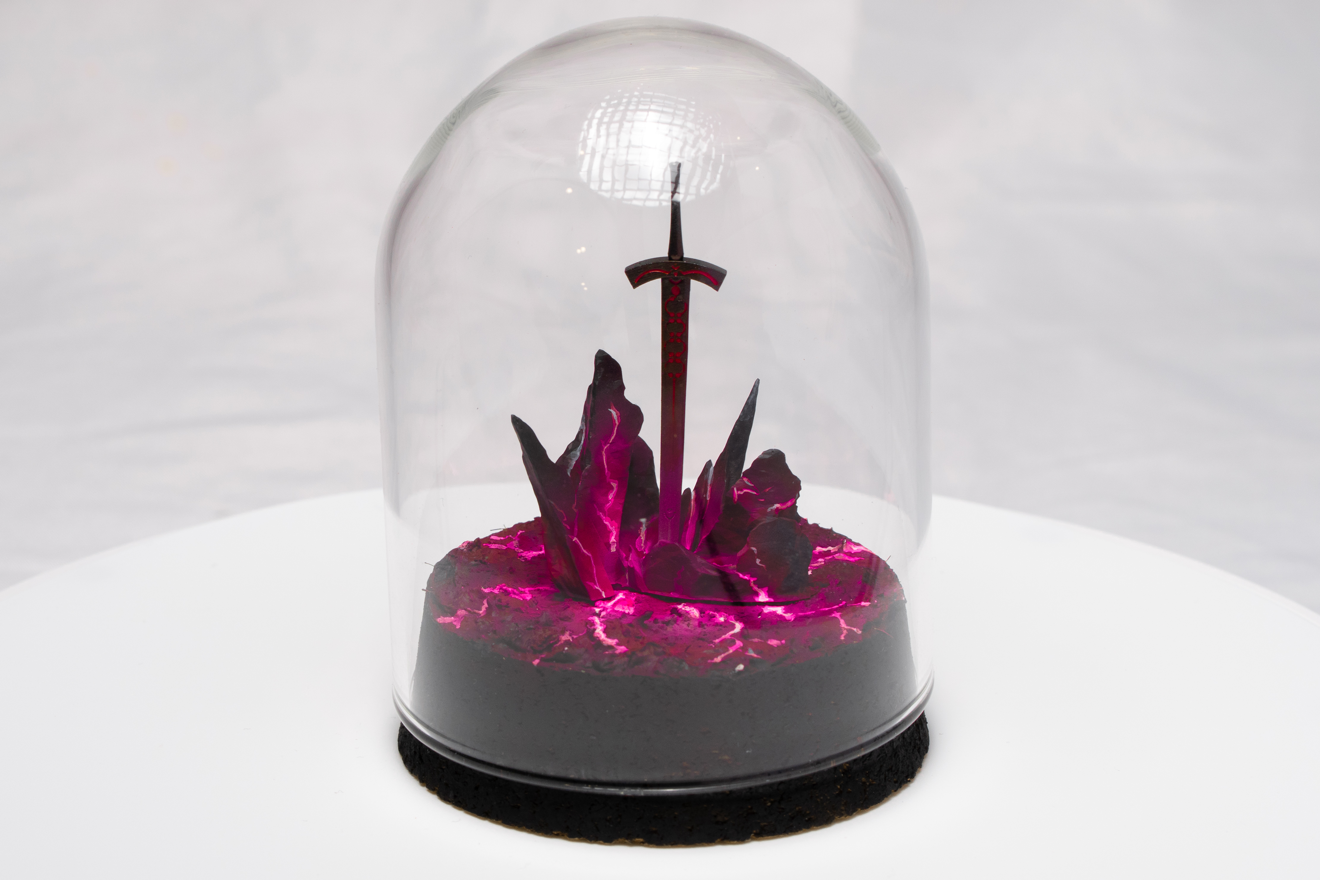 Crystalline bases through to the cloche moment—colour, glow, and transition into display.